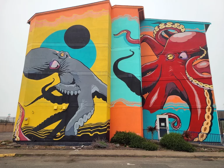Every sculpture, mural, and installation adds another layer to the town’s story. Copper salmon glint above City Hall, driftwood whales appear near the Cultural Center, and seabirds are frozen mid-flight along the boardwalk. The octopus theme is popular in Lincoln City and they can be seen on murals, on the art trail, and as part of the Parks and Recreation’s logo. Walking in Lincoln City feels like wandering an open-air gallery.