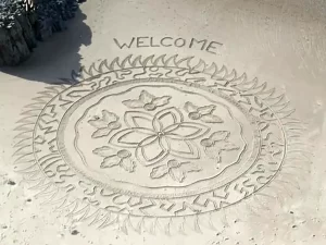 “Around 28 years ago our Resident Manager, Susan Burr, suggested that we celebrate a certain occasion by writing a message on the sand in front of the Inn. From that point on, we started doing drawings and messages on the beach.” explains Marc Rini.